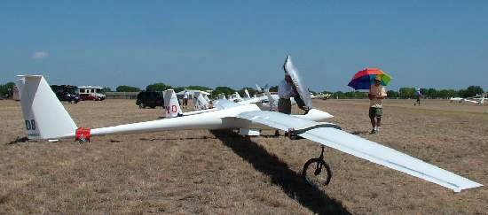 Though the official practice period hasn't yet started, we already have a handful of pilots warming up. Dick Butler with his highly-modified ASW-22, Roger Buchanan with his Antares 20E, Bill Elliot with his ASW-27, Brian Milner from Canada and his Nimbus 4, Tom Kelly with his ASG-29, some of the Harris Hill gang, and a few others.