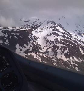 The briefing speech we never try to cross the valley below 10,000 ft echoed in my head as I started across at 8,500 but I followed a line of wisps and clouds, and got 6.5kt in the high ground north of Shasta for a reasonably quick and easy crossing. The cloud bases were lower in the valley and rose as we worked into the high ground, but while they were as high as 10,000 feet the valley floors are 5,000 and the some mountains were in cloud...